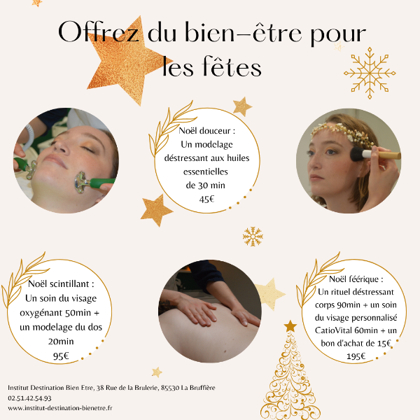 Rendez-vous sur l'onglet cartes-cadeaux du site internet ou directement à l'institut, au 38 rue de la brulerie à la Bruffière, pour vos achats de coffrets de Noël. Et pour plus de renseignements, contactez-moi au 02.49.88.28.14.